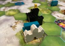 Early in the game turns move thick and fast – it’s about grabbing real estate, placing workers for resources and building routes between the two. As the game proceeds however, and players find their best-laid-plans messed-with, there may be the odd lull whilst rejigging takes place.
