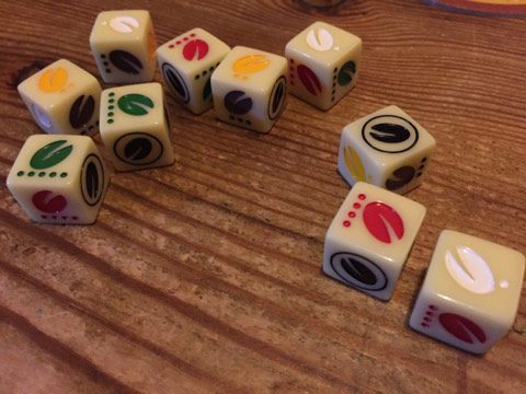 In VivaJava: The Coffee Game: The Dice Game you are competitive brewers, trying to impress your employer (VivaJava) the most with your brewing skills and picking up performance points (PP) for doing so. How that translates to play is rolling dice, and pushing your luck.