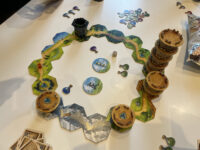 A nice mix of racing, cardplay, dice-rolling (some cards allow you to roll a die then apply the result to movement) and memory, as it can be surprisingly hard to recall where your trapped wizards have ended up, with the towers constantly moving. It looks great too. If there’s a downside it’s that Wandering Towers is extremely reactive, to the point where there is no planning of turns at all because of how much everything changes between turns. That can lead to slight lulls as players puzzle over their options…. but on the other hand, you’re only playing two cards from three each turn, so there isn’t anything here that should cause the game to grind to a halt.
