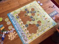 While it doesn’t convince as realistic retelling of the great railroad revolution – the tracks are more like a jumbled mass of spaghetti spilled from the mind of a deranged engineer with no sense of direction – the joy of Whistle Stop is in the slightly madcap aspect of it, as you eagerly look to pull off a great combo where trains A and B pick up what you need and train C – somehow – delivers it. You can race for the west ignoring shares, or pootle along delivering goods, or go for a tactical, reactive game. You can ignore upgrades entirely or build a strategy around them – there is a lot to explore here and I feel that if it’s not a train game in the classic sense – and it really isn’t – it’s still a rather fun way to spend an hour or so. The only downside here is the pastel colours can make it hard to navigate for colour-blind gamers.