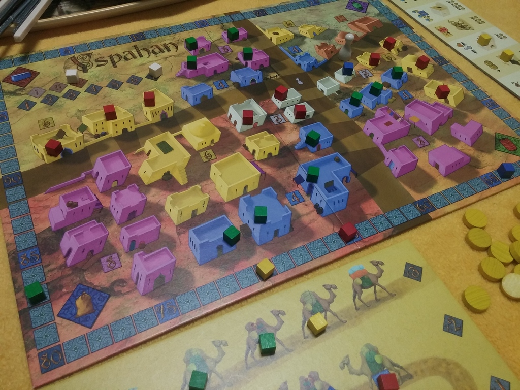 Yspahan is one of those games you can find yourself explaining purely by talking about the rules and realise you’ve completely missed out what it’s supposed to be about. That’s not a terrible crime, but it does feel to me more a collection of neat mechanics than a neatly-parceled theme. As such it doesn’t sail into my best-ever list, but I think it’s a solid game, with various strategies (the city, the trail, buildings) and the dice element is good fun.
